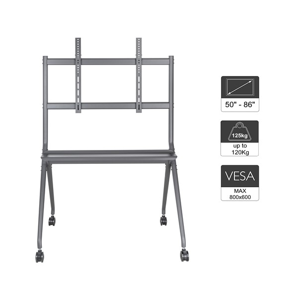 Supporto TV / Monitor Interattivo universale su ruote: il carrello TV / Monitor Interattivo mobile si adatta alla maggior parte degli schermi LED, LCD, OLED piatti e curvi da 50-86" con un peso fino a 120 kg; Compatibile con fori VESA: 200x200,300x200,400x200,300x300,400x300,400x400,600x400,800x400,600x600,800x600mm