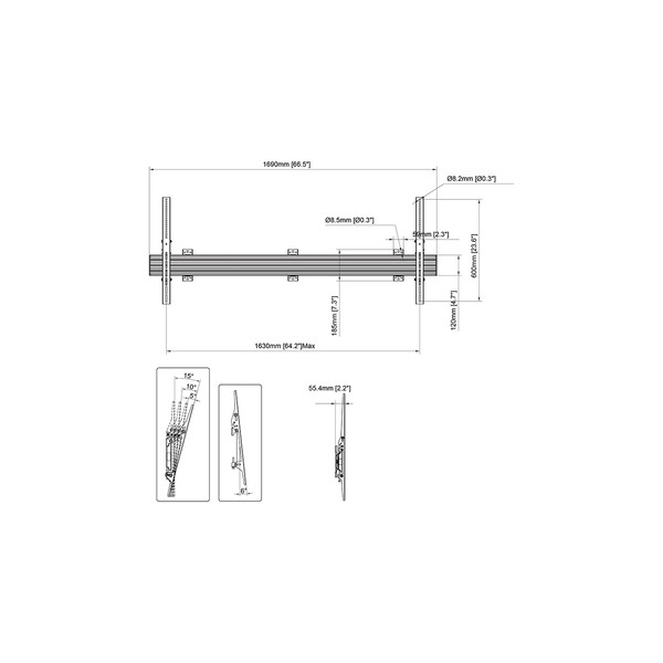 Multibrackets 3298. Peso massimo (capacità): 80 kg, Capienza minima dimensioni dello schermo: 101,6 cm (40"), Capienza massima dimensioni dello schermo: 2,79 m (110"), Compatibilità interfaccia di montaggio (min): 100 x 100 mm, Compatibilità interfaccia di montaggio (max): 1600 x 600 mm. Inclinazione: -6 - 15°. Colore del prodotto: Nero