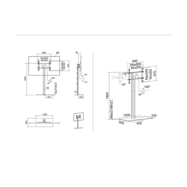 Multibrackets 7260. Peso massimo (capacità): 60 kg, Capienza minima dimensioni dello schermo: 139,7 cm (55"), Capienza massima dimensioni dello schermo: 2,03 m (80"), Compatibilità interfaccia di montaggio (min): 200 x 200 mm, Compatibilità interfaccia di montaggio (max): 800 x 400 mm. Inclinazione: -5 - 15°. Colore del prodotto: Nero