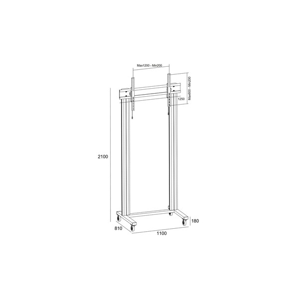 Multibrackets 2753. Peso massimo (capacità): 125 kg, Capienza minima dimensioni dello schermo: 177,8 cm (70"), Capienza massima dimensioni dello schermo: 2,79 m (110"), Compatibilità interfaccia di montaggio (max): 1200 x 600 mm. Colore del prodotto: Nero