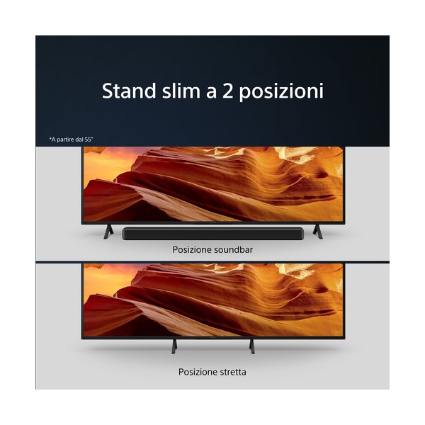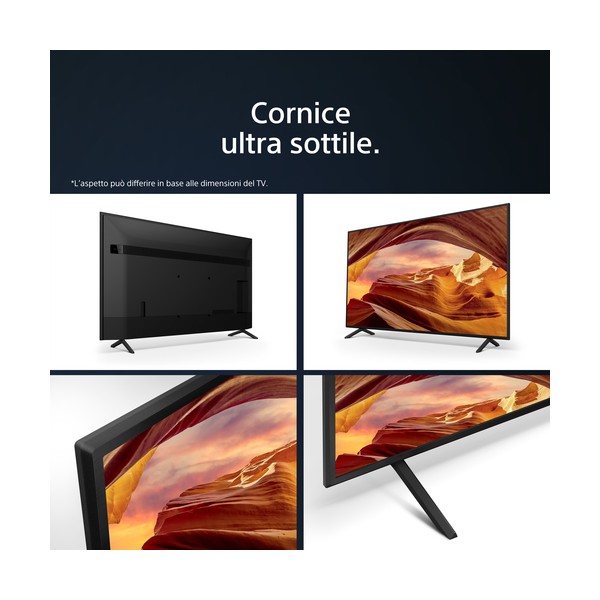 Il TV è stato progettato nel nostro caratteristico stile minimalista per mantenere l'attenzione su ciò che è importante: l'immagine. Con una finitura sottile e un supporto fisso Slim Blade, l'X75WL si adatta a qualsiasi interno