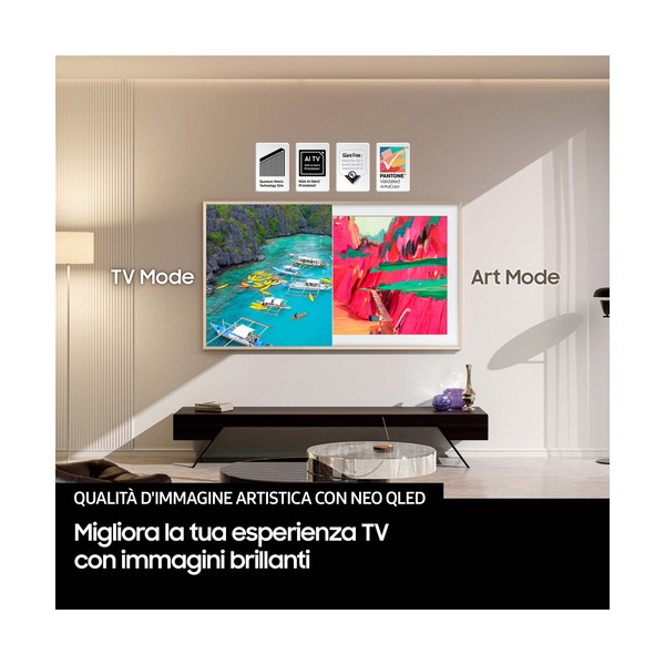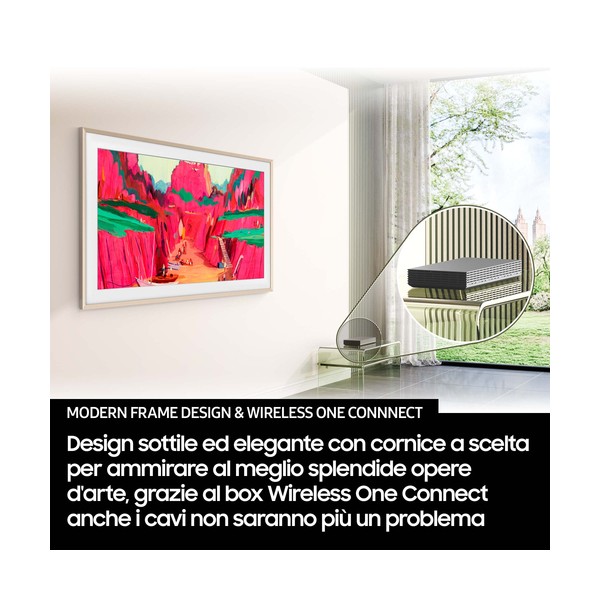 Grazie al suo design elegante ed essenziale, The Frame Pro è un vero capolavoro. Inoltre, si connette con altri dispositivi in modalità wireless, per modificare la configurazione e riorganizzare la stanza secondo i tuoi gusti.