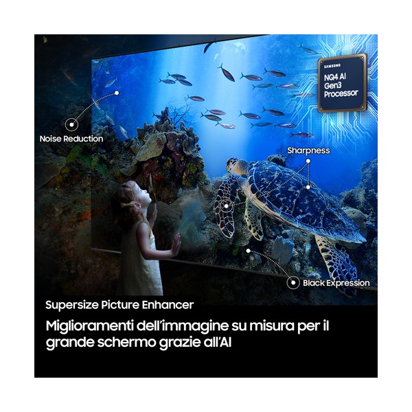 Grazie al supporto di 128 reti neurali AI, questo processore AI assicura suoni e immagini di qualità semplicemente eccezionale. Potrai vivere un'esperienza di visione perfetta in 4K, sia per la riproduzione di contenuti in streaming su piattaforme OTT, ma anche per giocare ai tuoi videogiochi preferiti o guardare eventi sportivi in diretta.
