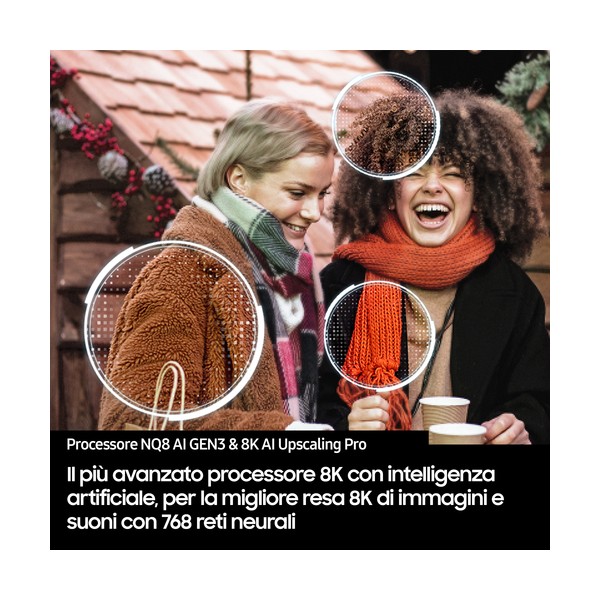 Qualità senza compromessi grazie al processore AI Samsung più all'avanguardia di sempre. Grazie al supporto di 768 reti neurali AI, riproduce suoni e immagini con una qualità senza precedenti. Questo televisore 8K è in grado di offrire prestazioni semplicemente straordinarie con qualsiasi contenuto.