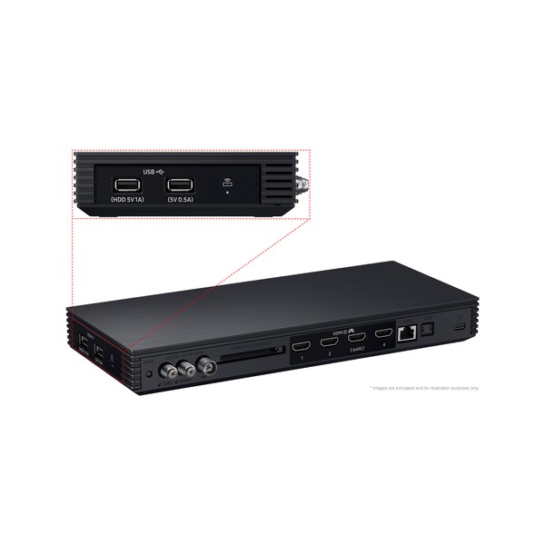 Collega tutte le sorgenti HDMI alla box Wireless One Connect, che potrai posizionare in qualsiasi direzione a una distanza massima di 10 metri dal televisore, trasmettendo in modalità wireless un segnale 8K fino a 120 Hz, in modo da liberare spazio ed eliminare ogni ingombro intorno al televisore.