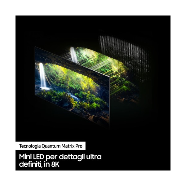 I nuovi Mini LED di Samsung sono più piccoli e precisi che mai. Grazie allesperto controllo offerto da Quantum Matrix Technology Pro, i Mini LED generano immagini con una migliore luminosità e un contrasto più chiaro. La prossima volta che guardi un film, rilassati e ammira la luminosità dei colori e la potenza estrema dei neri.