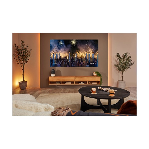 Adori i film dazione pieni di scontri e fragorose esplosioni? Ora con gli altoparlanti supportati da Dolby Atmos® posizionati sul retro dello schermo potrai goderti un emozionante audio surround che ti farà sentire al centro dellazione.