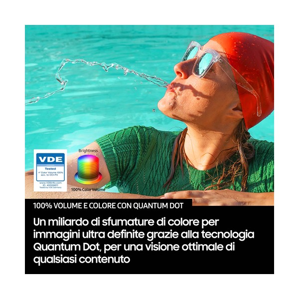 La tecnologia Real Quantum Dot regala le più belle immagini di sempre. Con il 100% Volume Colore, Quantum Dot cattura la luce e la trasforma in colori mozzafiato che conservano tutto il loro realismo a vari livelli di luminosità.
