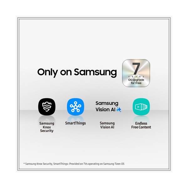 One UI Tizen offre un'esperienza personalizzata sullo schermo. Con il sistema operativo Samsung Tizen, avrai a disposizione tutte le funzioni Samsung più aggiornate e innovative. Inoltre, la tua esperienza sarà protetta da Samsung Knox su tutti i dispositivi SmartThings. One UI Tizen supporterà gli aggiornamenti del sistema operativo Tizen per i prossimi 7 anni.