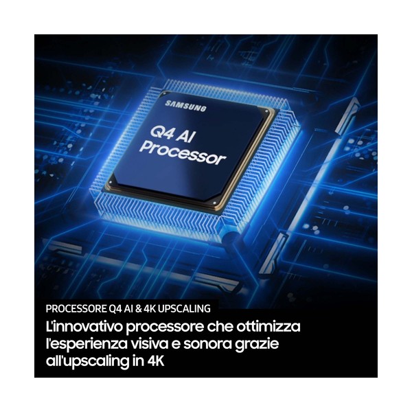 Il processore intelligente di Samsung ottimizza le immagini e laudio in base alle condizioni di visione. Con le prestazioni straordinarie offerte dallupscaling in 4K, potrai guardare i tuoi contenuti preferiti anche in 4K.