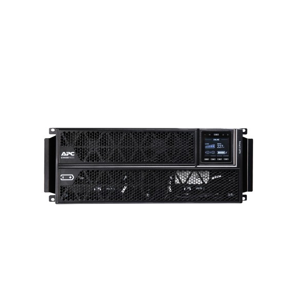 APC SRTG5KXLI. Topologia UPS: Doppia conversione (online), Potenza in uscita: 5 kVA, Potenza in uscita: 5000 W. Tipo di uscita AC: Accoppiatore C13, Accoppiatore C19, Quantità prese AC: 3 presa(e) AC. Tecnologia batteria: Acido piombo (VRLA), Voltaggio della batteria: 96 V, Durata della batteria (max): 5 anno/i. Fattore di forma: Compatta, Colore del prodotto: Nero, Capacità di rack: 4U. Larghezza: 440 mm, Profondità: 620 mm, Altezza: 178 mm