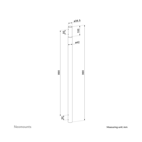 Neomounts ACL25-500BL è un'asta di prolunga per i modelli di proiettori a soffitto CL25-540BL1 e CL25-550BL1. Questo palo può essere utilizzato come estensione aggiuntiva al palo già in dotazione con i modelli. In questo modo, l'altezza dei supporti a soffitto può essere aumentata di 89 cm.