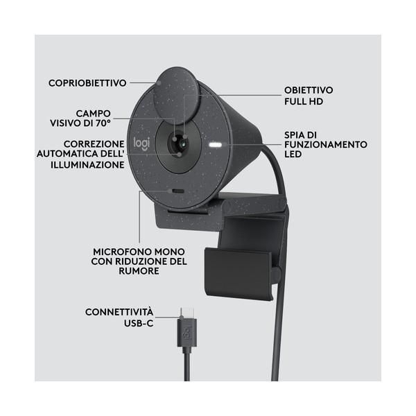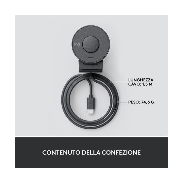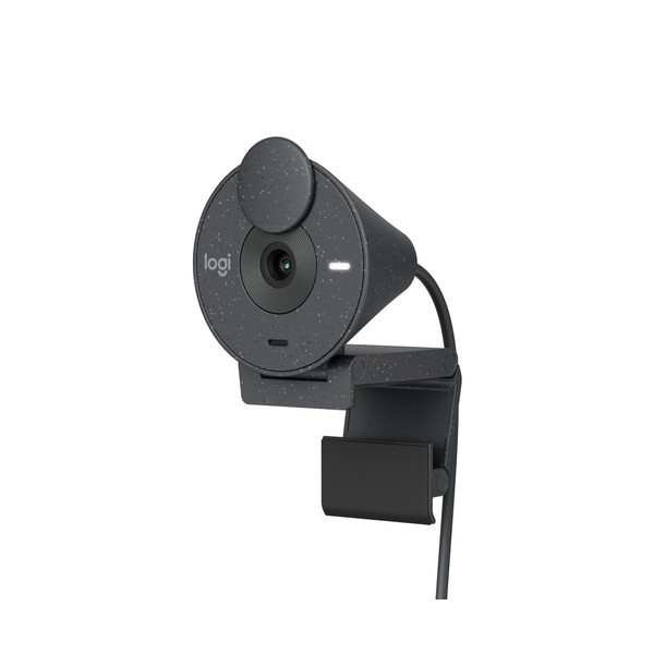 Logitech Brio 300 Webcam Full HD con Otturatore Privacy, Mic con Riduzione del Rumore, USB-C, Certificata per Zoom, Microsoft Teams, Google Meet, Correzione Automatica della Luce, Grafite