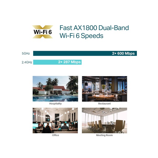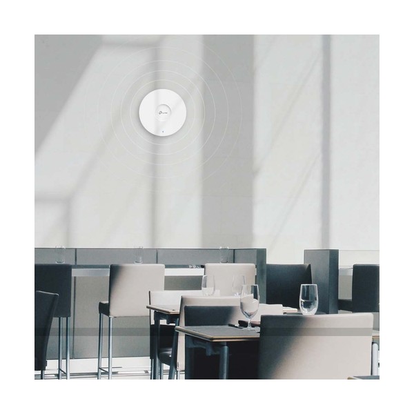 TP-Link EAP613. Velocità massima di trasferimento dati: 1800 Mbit/s, Velocità massima di trasferimento dati (2,4 GHz): 574 Mbit/s, Velocità massima di trasferimento dati (5 GHz): 1201 Mbit/s. Algoritmi di sicurezza supportati: HTTPS, SNMP, SNMPv2, SNMPv3, WPA, WPA2, WPA3. Piattaforma di gestione: Omada. Installazione: Soffitto, Parete, Colore del prodotto: Bianco, Certificazione: CE, FCC, RoHS. Tipo di antenna: Interno, Tipo di direzione dell'antenna: Omnidirezionale, Livello di guadagno dell'antenna (max): 5 dBi